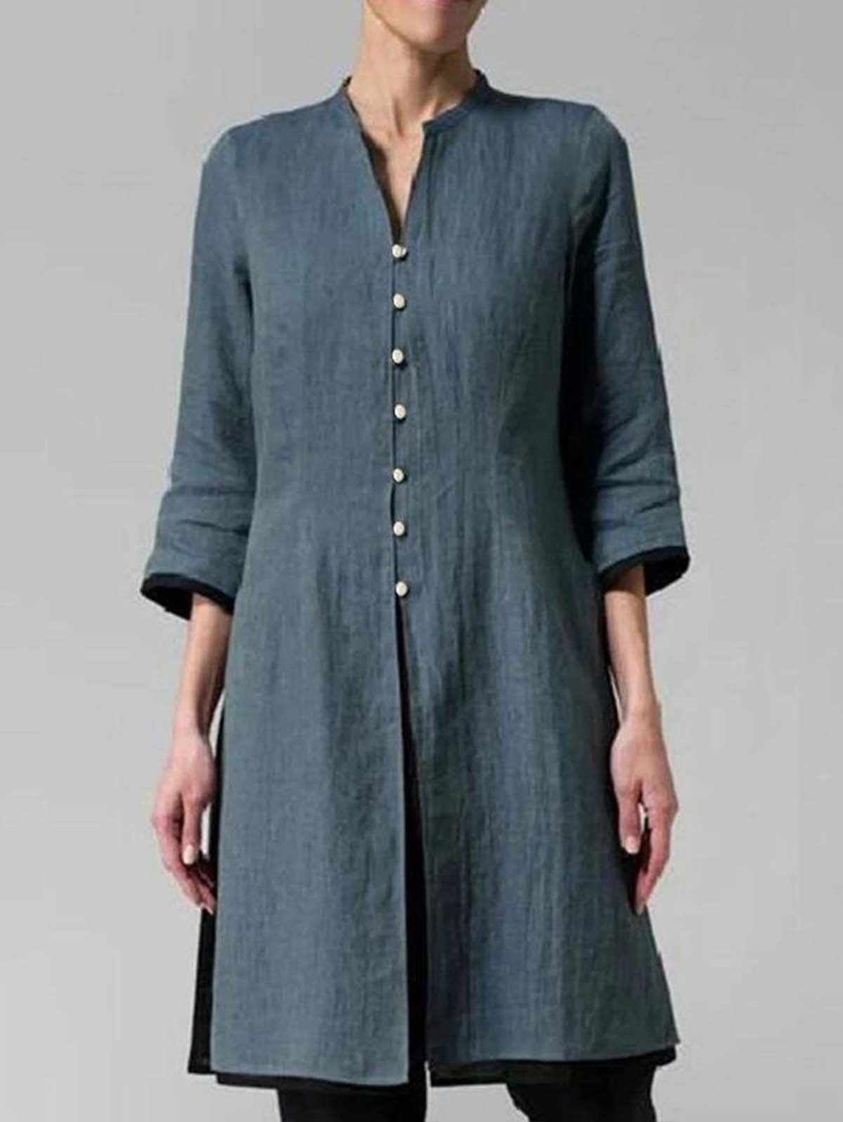 Irregular Cotton and Linen Long Shirt