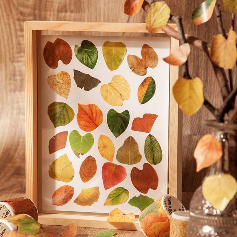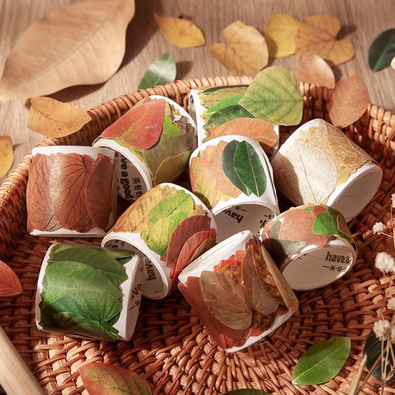 This retro autumn themed washi tape sticker has 8 themed patterns and decorations including ginkgo biloba leaves. birch leaves. jackfruit leaves. redbud leaves. linden leaves. tropical rainforest leaves. banyan leaves. leaf veins. which can meet a variety of application needs.