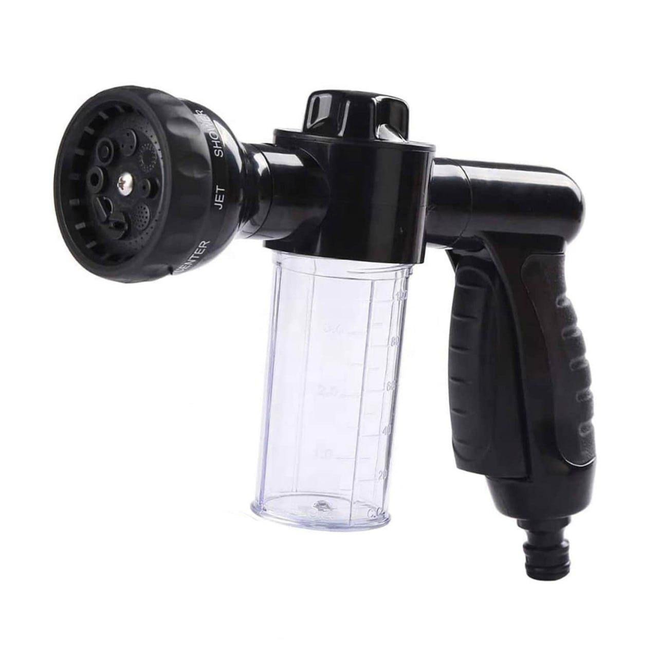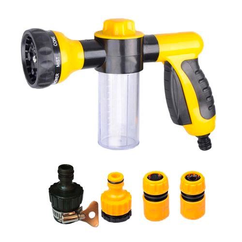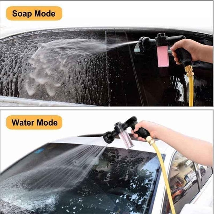 - HIGH PRESSURE INDUSTRIAL DESIGNThe car wash hose nozzle has 8 spray patters and a soap dispenser. New design technology can concentrate water pressure at a point. spray distance up to 6-10 meters.