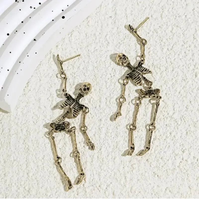 - Striking Skeleton Design: Each earring features a detailed skeleton. embodying a gothic charm that complements any punk or dark-themed outfit.