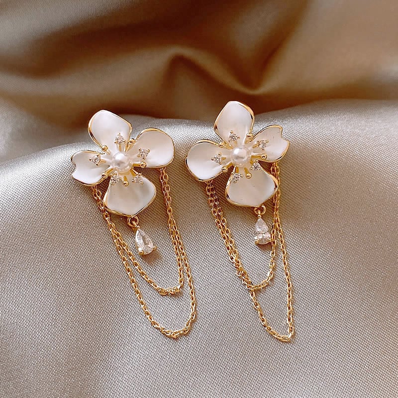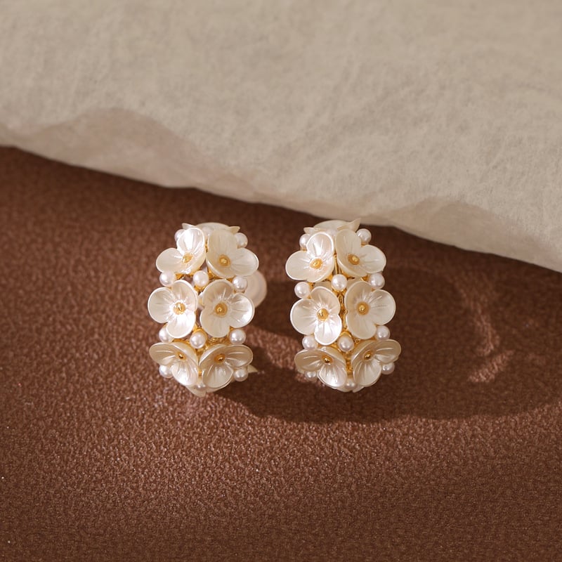 ✨ Exquisite Floral Design: Crafted with precision. each flower is delicately arranged to create a 3D effect that exudes charm and sophistication. The subtle gold plating blends seamlessly with the flowers. adding a warm glow that enhances the natural sheen of the pearls.