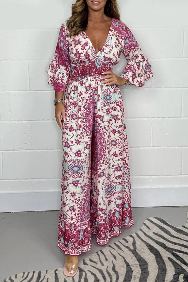These V-Neck Printed Wide Leg Pant Jumpsuits are 2024 new style you have never seen before! Pair this with sandals and fashion jewelry for casual day outside!