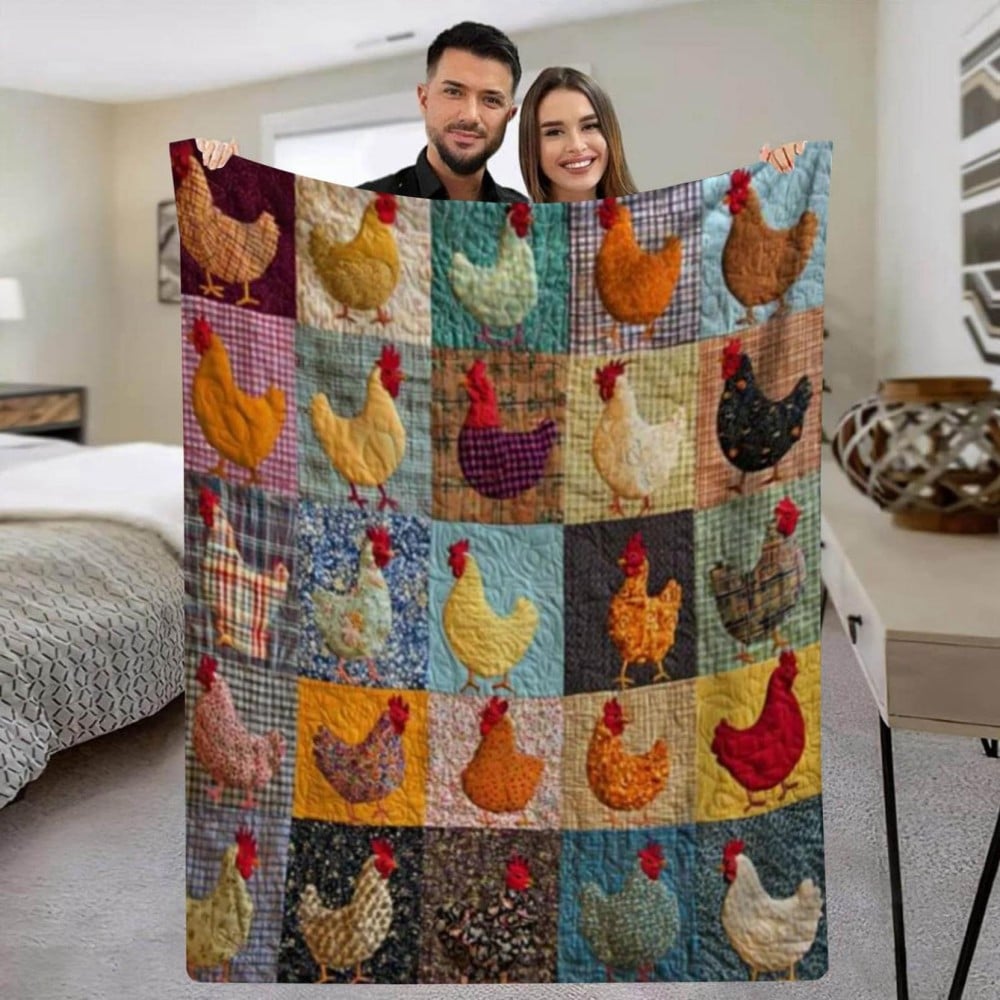 Whether you’re cuddling up on the couch, traveling, or looking for a fun gift idea, this chicken-pattern blanket is both practical and adorable.